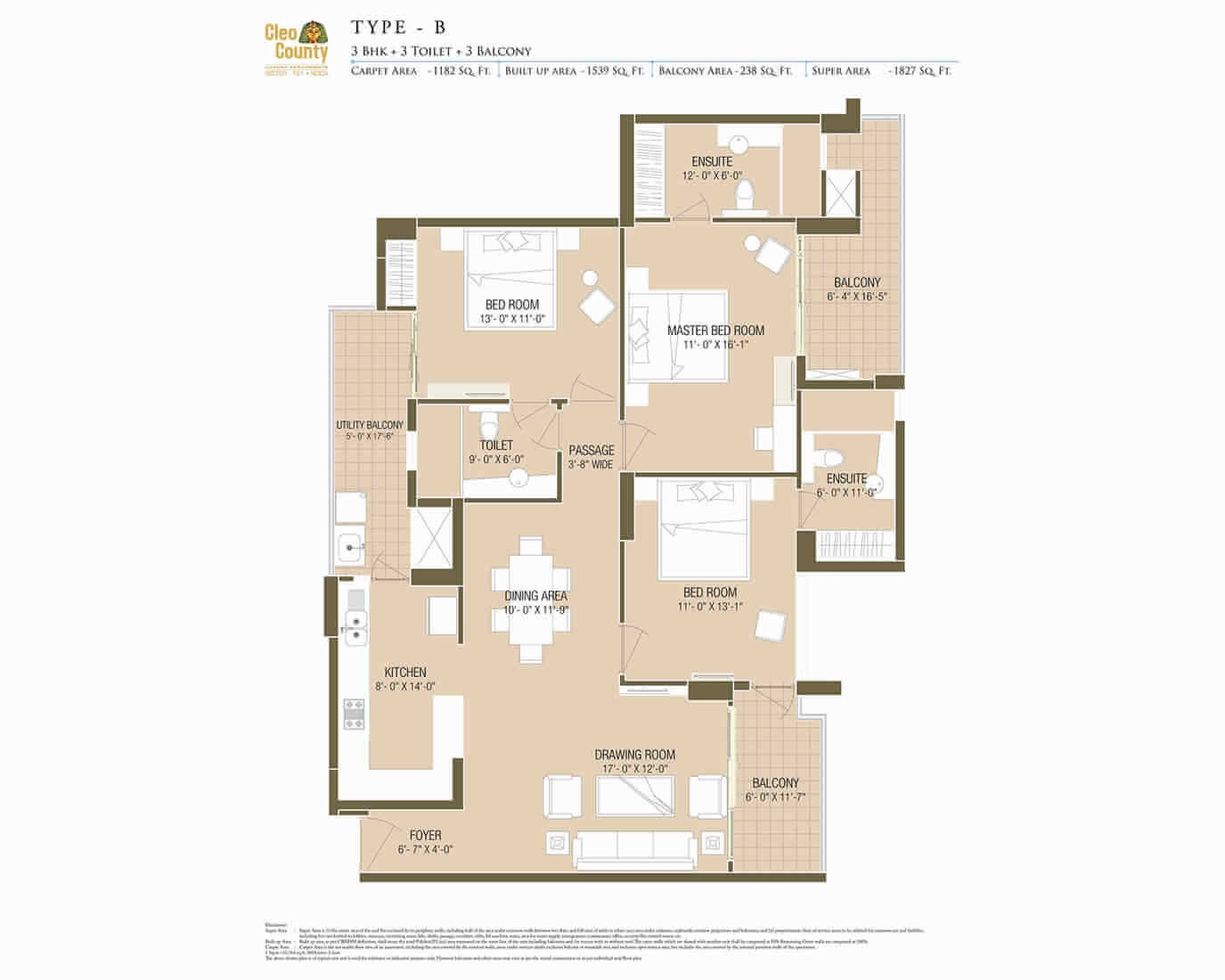 | 3 BHK+3T (Type B) | 1827 SQ FT | ₹ 1,73,56,500/- | ENQUIRE NOW |