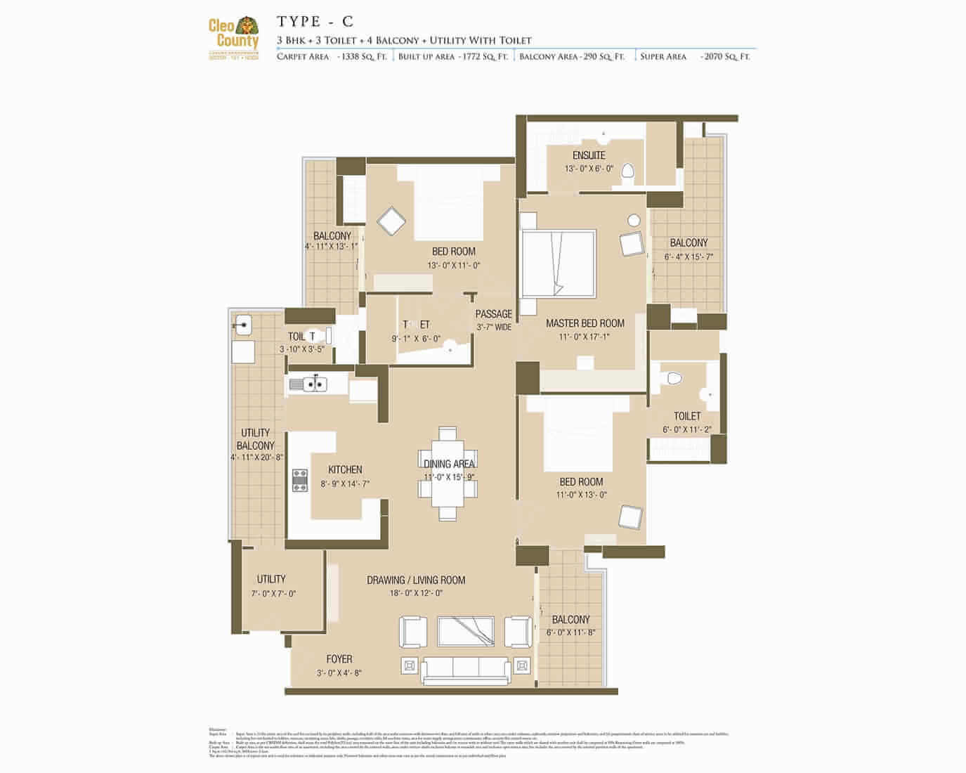| 3 BHK+U (Type C) | 2070 SQ FT | ₹ 1,96,65,000/- | ENQUIRE NOW |