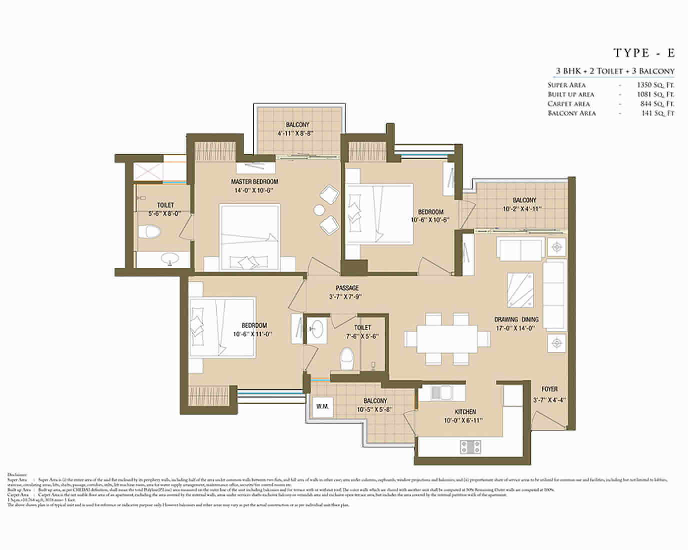 | 3 BHK+2T (Type E) | 1350 SQ FT | ₹ 1,28,25,000/- | ENQUIRE NOW |
